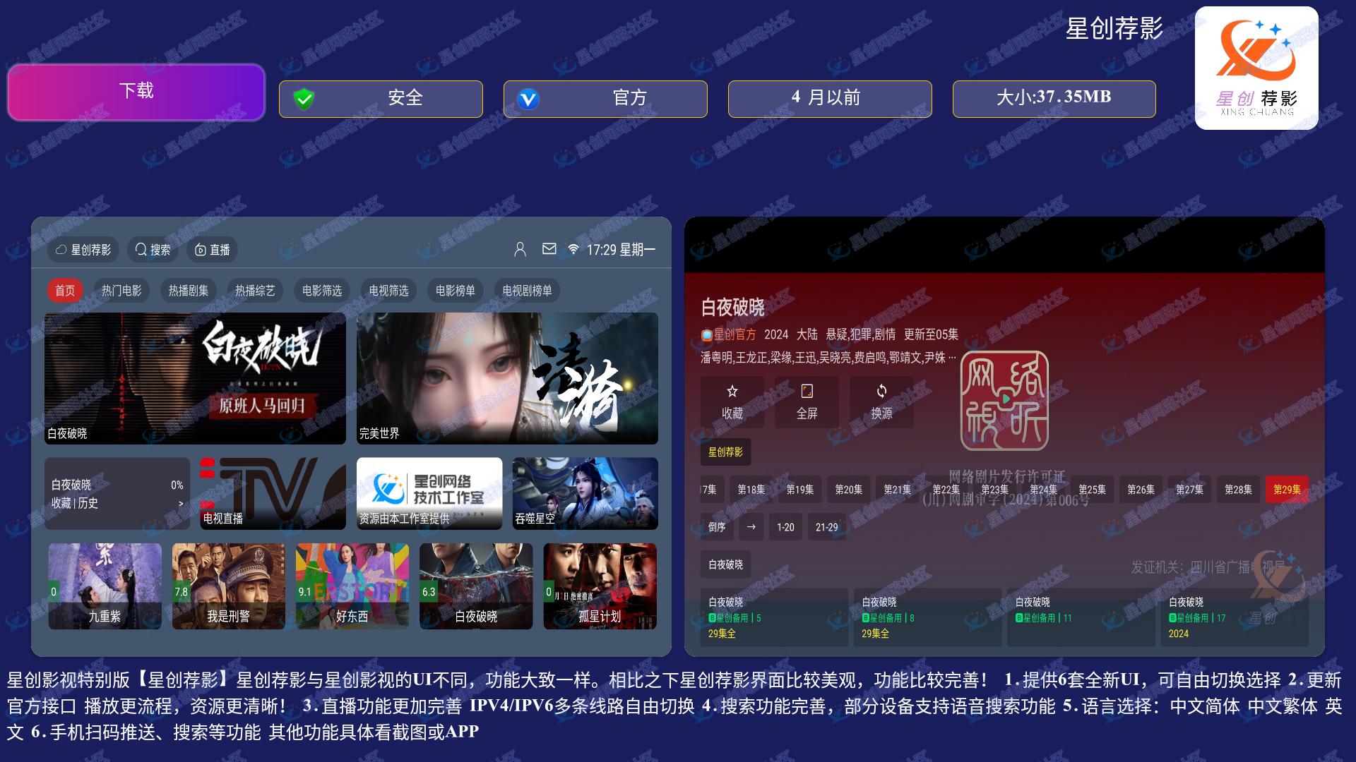 星创网路技术工作室主要开发TV软件、网站、微信小程序等业务!所有软件免费分享使用,请勿倒卖或用于非法用途!